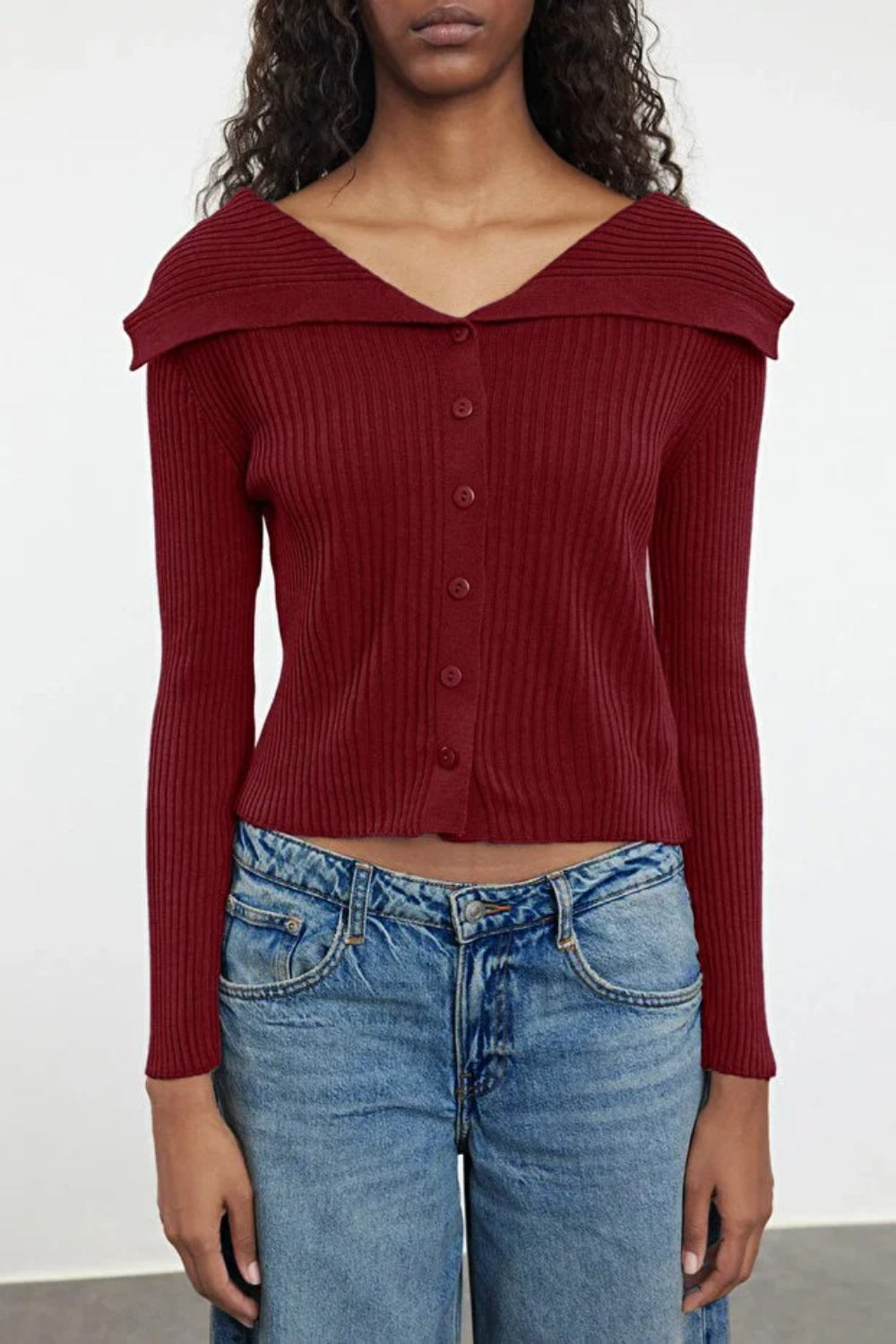 Cropped Soft-Textured High Neck Knit Cardigan