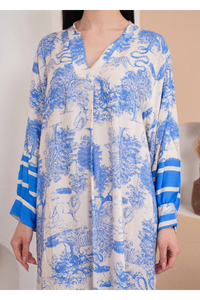 Unveil relaxed elegance with our Blue Animal Printed Midi Dress. The oversized silhouette ensures comfort, while long sleeves add a touch of sophistication. Embrace the bold trend of animal print, making a fashion-forward statement. Ideal for various occasions, the calming blue hue complements the distinctive pattern. Transition seamlessly from casual to dressy with this versatile midi dress, balancing comfort and style effortlessly. Elevate your wardrobe with this chic and relaxed piece, embodying both trendiness and ease in one ensemble.