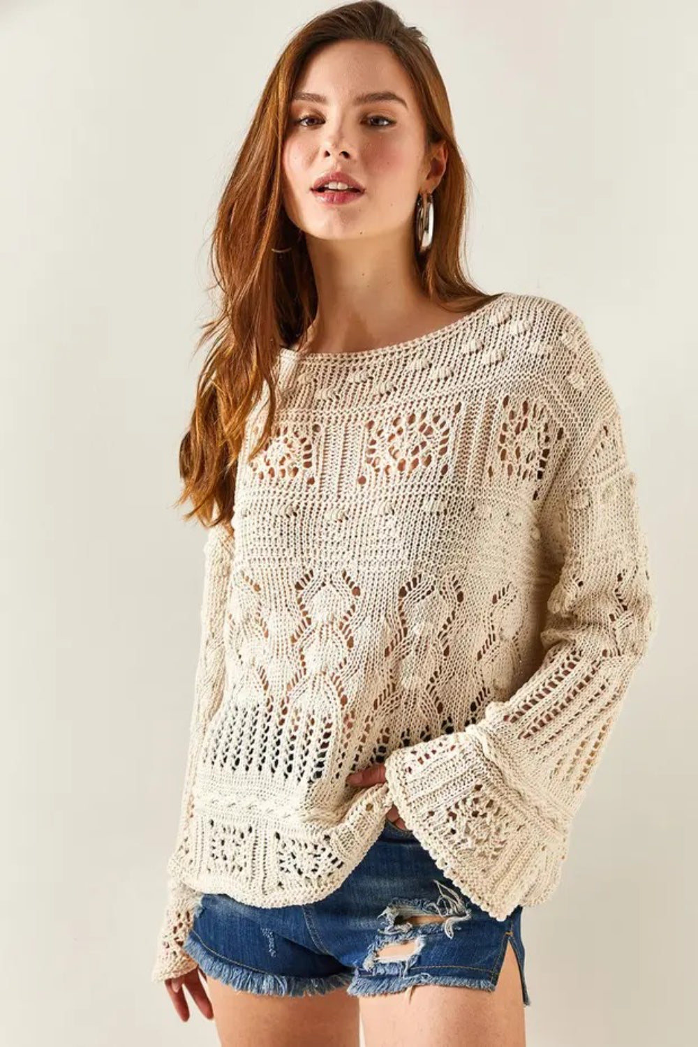 Oversized Long Sleeves Midi Knitted Cardigan with Pocket Details in Cream
