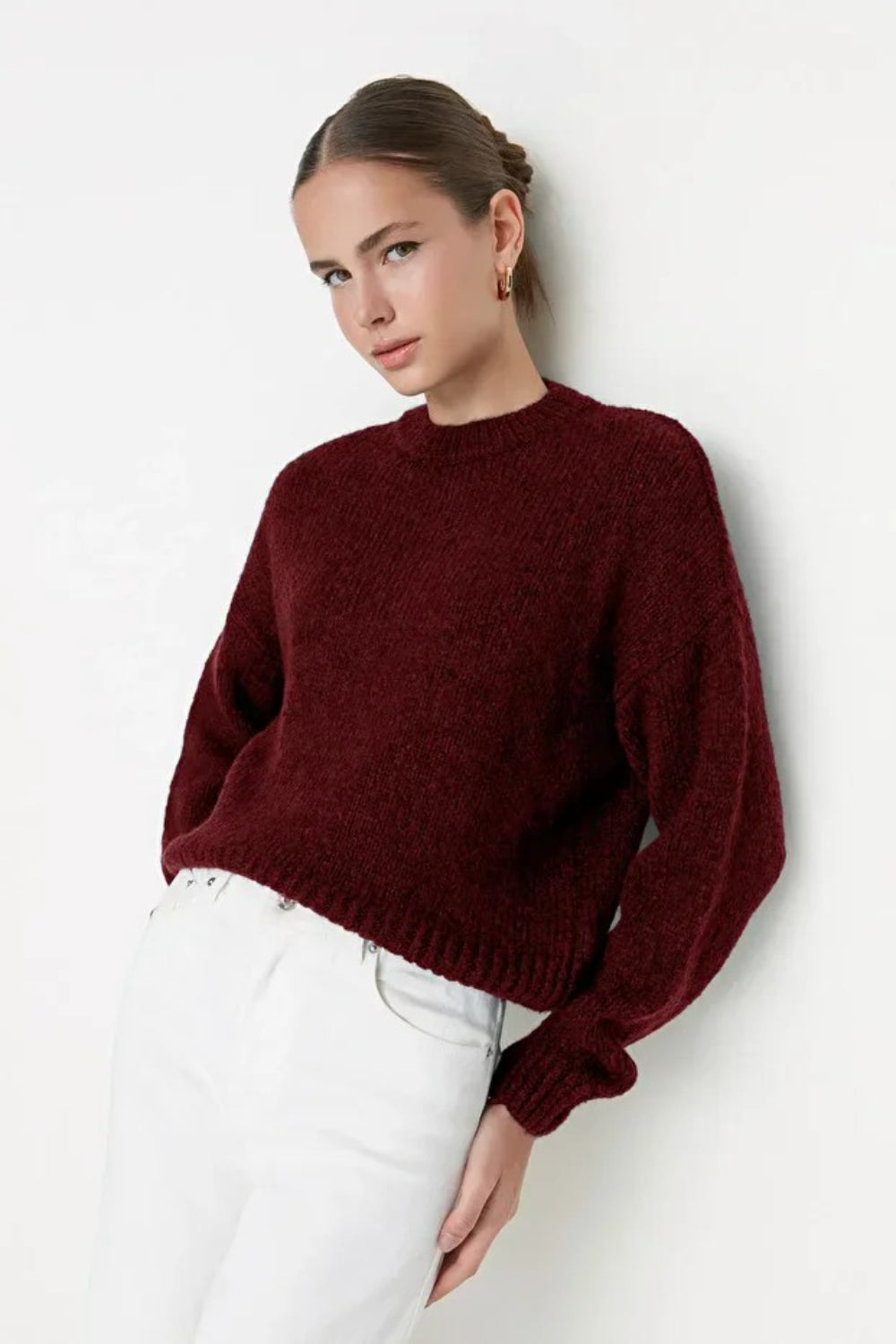 Oversized Soft-Textured High Neck Knit Top