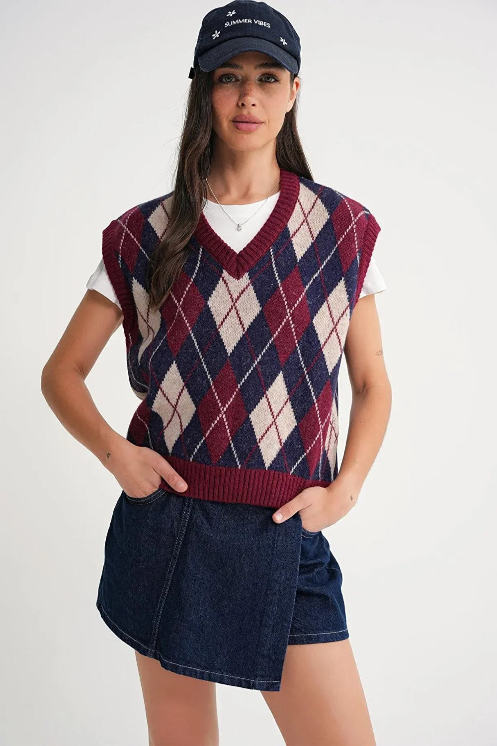 Argyle Pattern Knit Sweater Vest