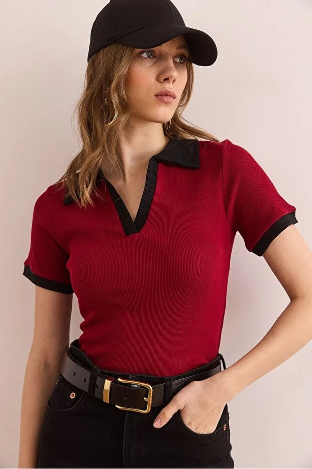 Belted Fitted Knit Blouse