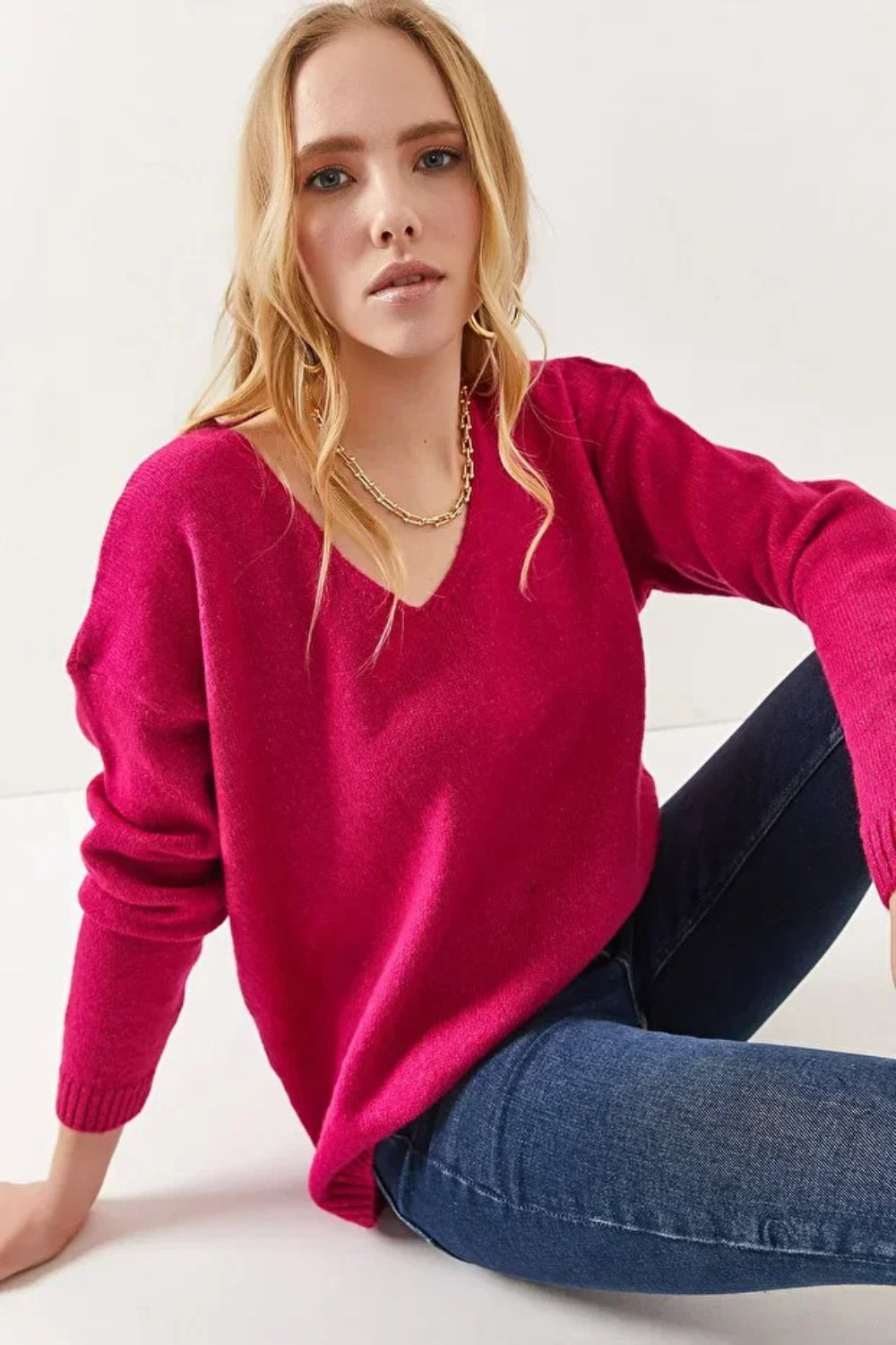 V-Neck Soft-Texture Knit Sweater