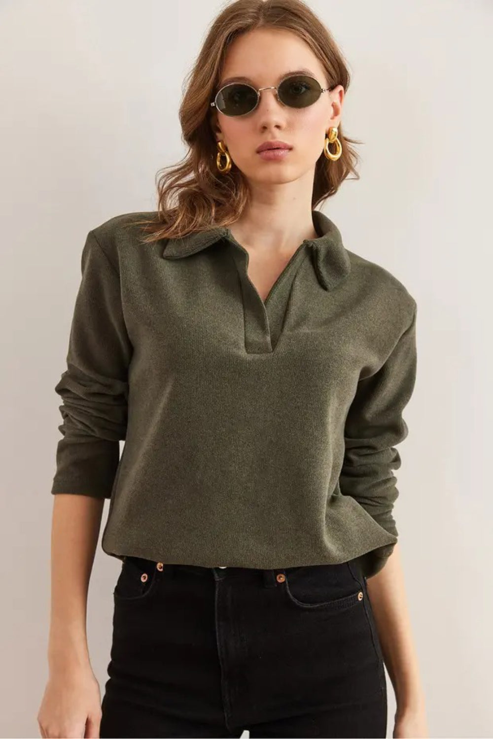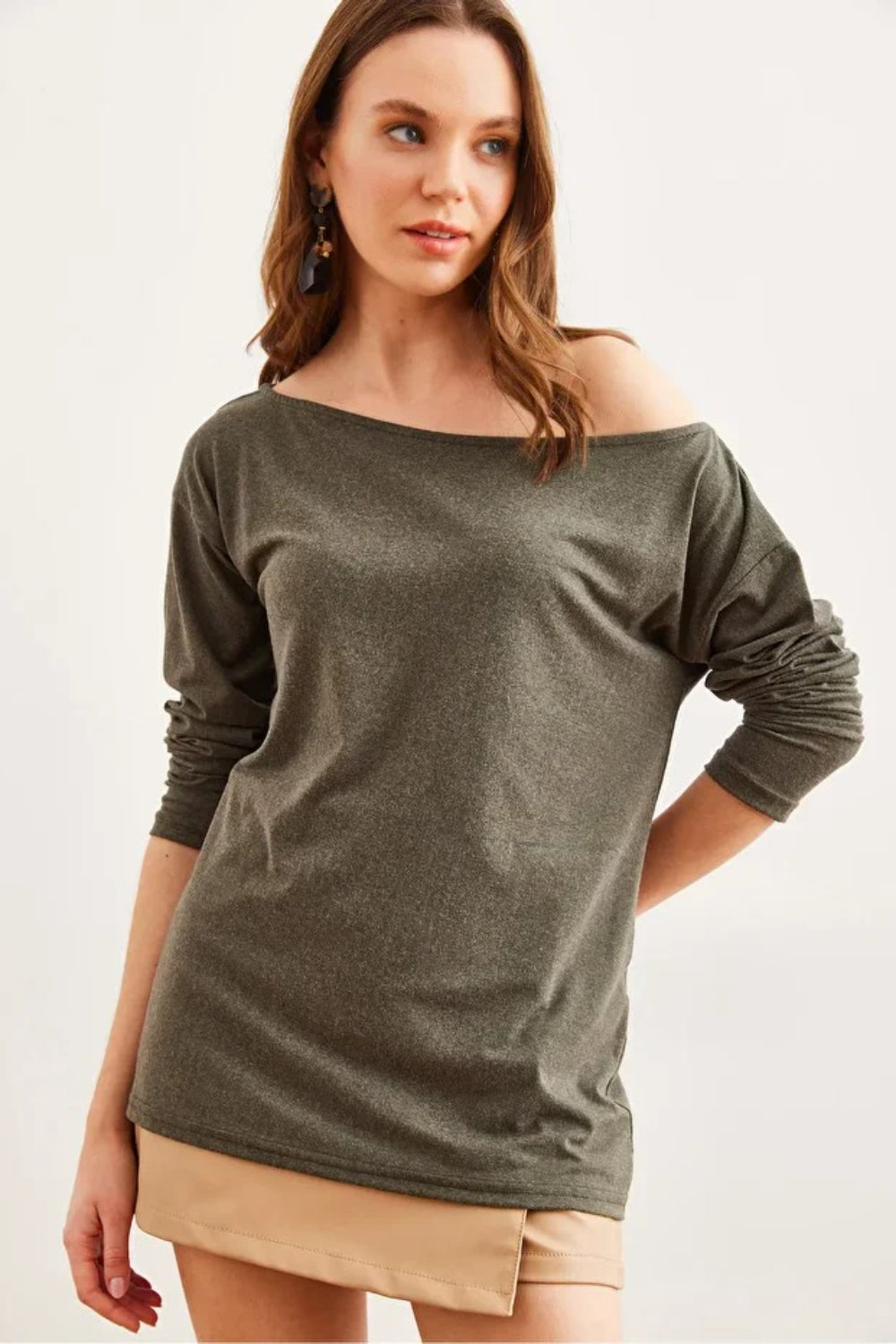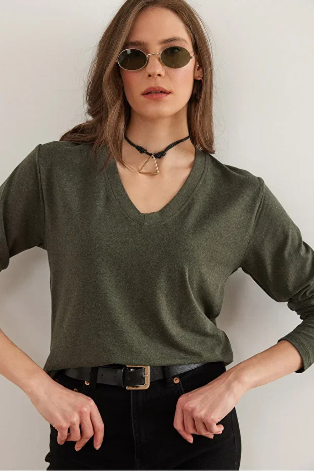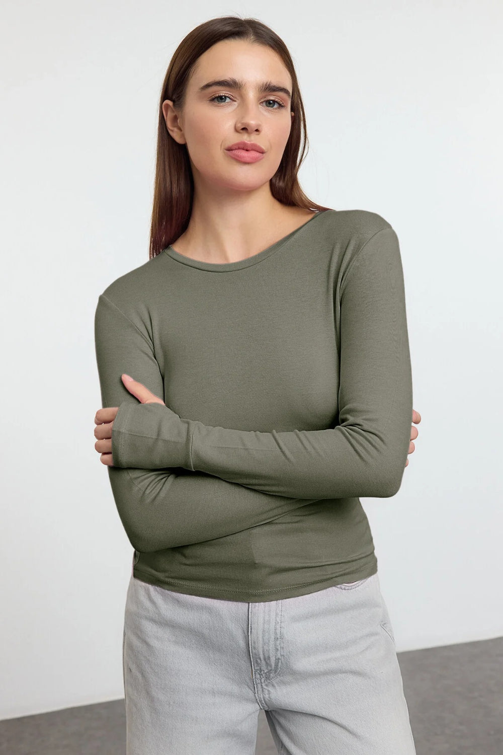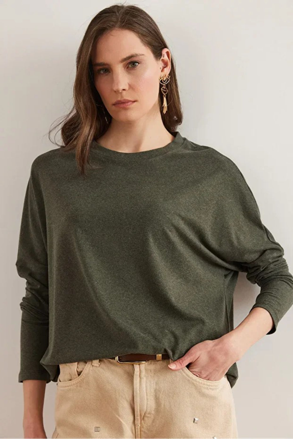 Viscose Soft Fabric Stretch Knit Blouse with Thumbhole Detail