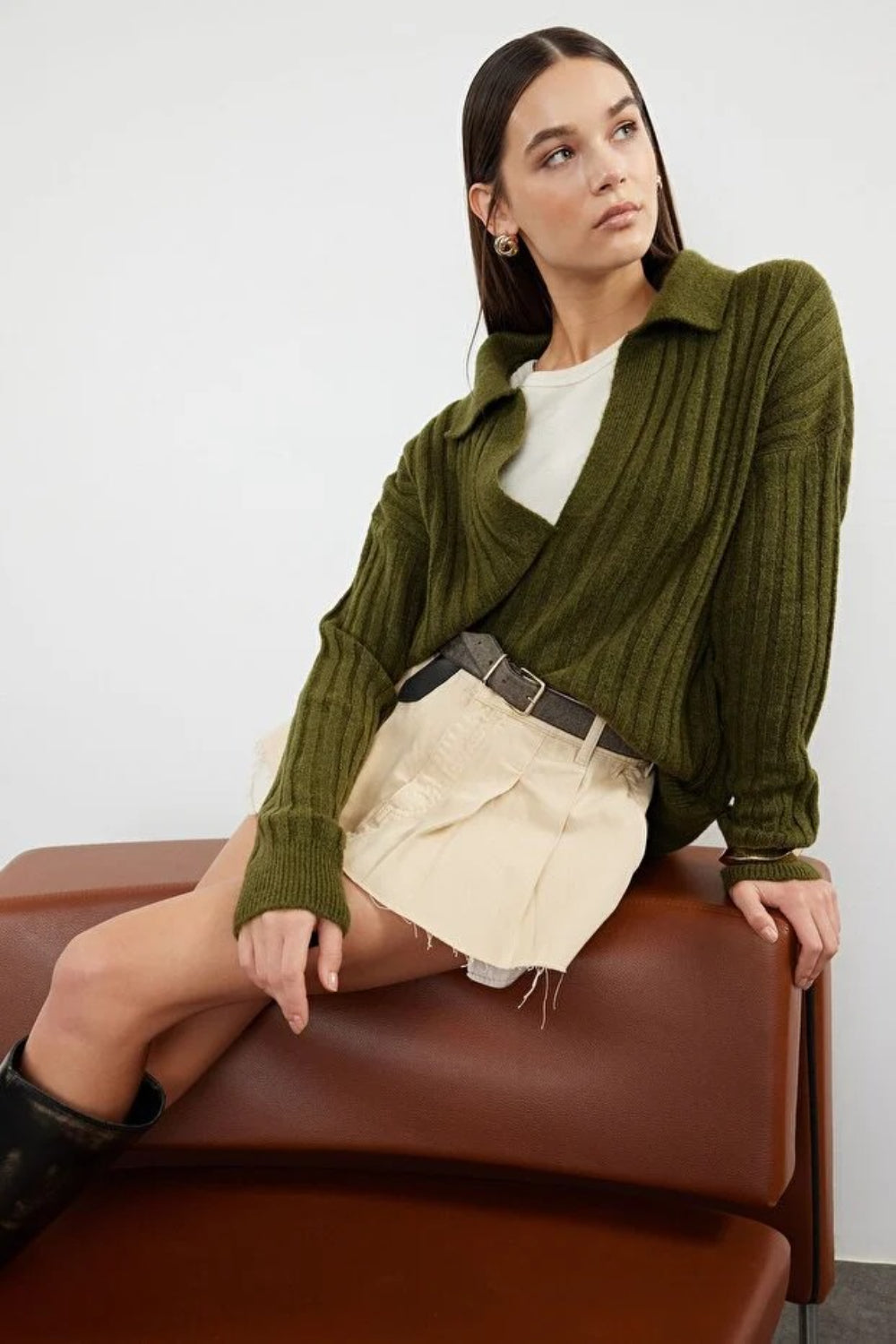 Relaxed Fit Layered Knit and Pleated Dress Set in Khaki