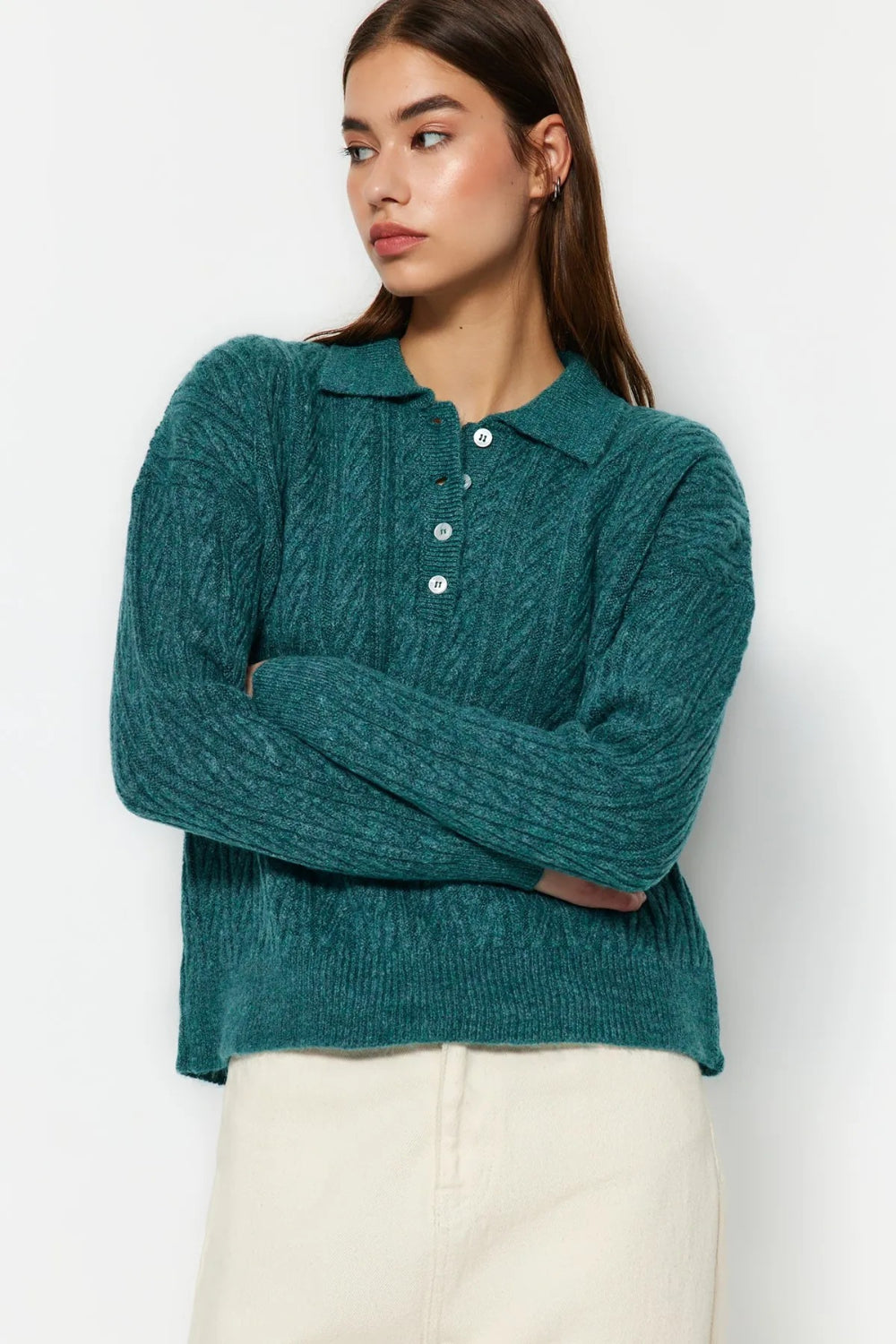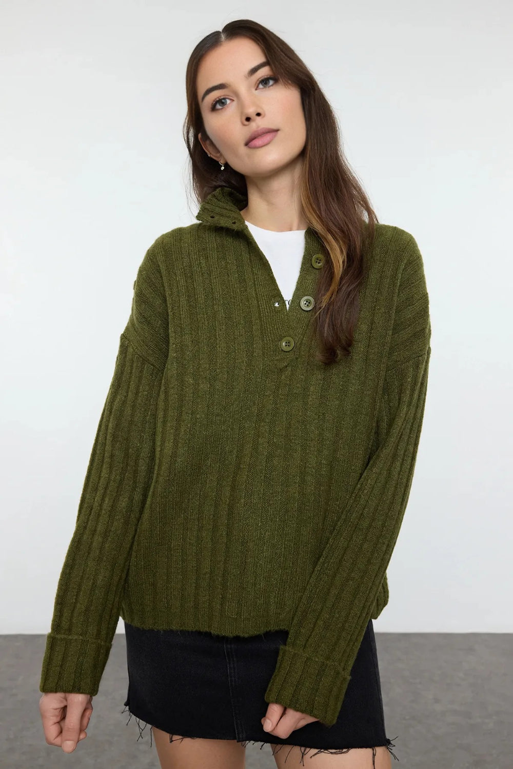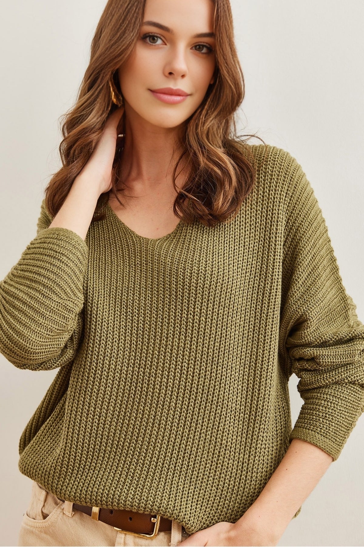 V-Neck Fisherman’s Rib Knit Oversized Sweater