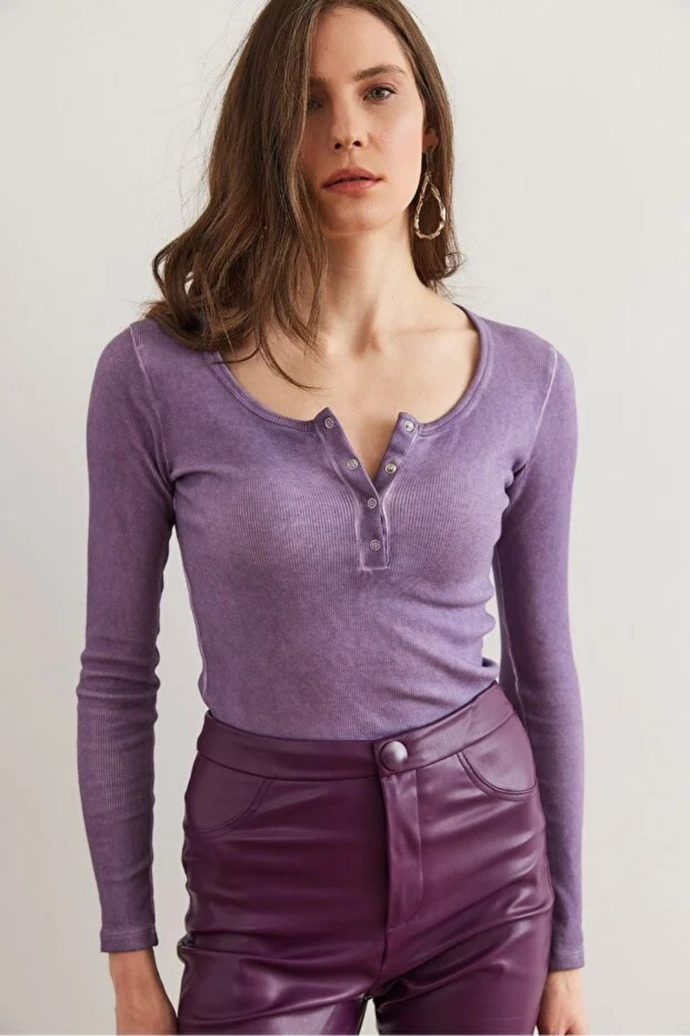 Button Placket Ribbed Blouse