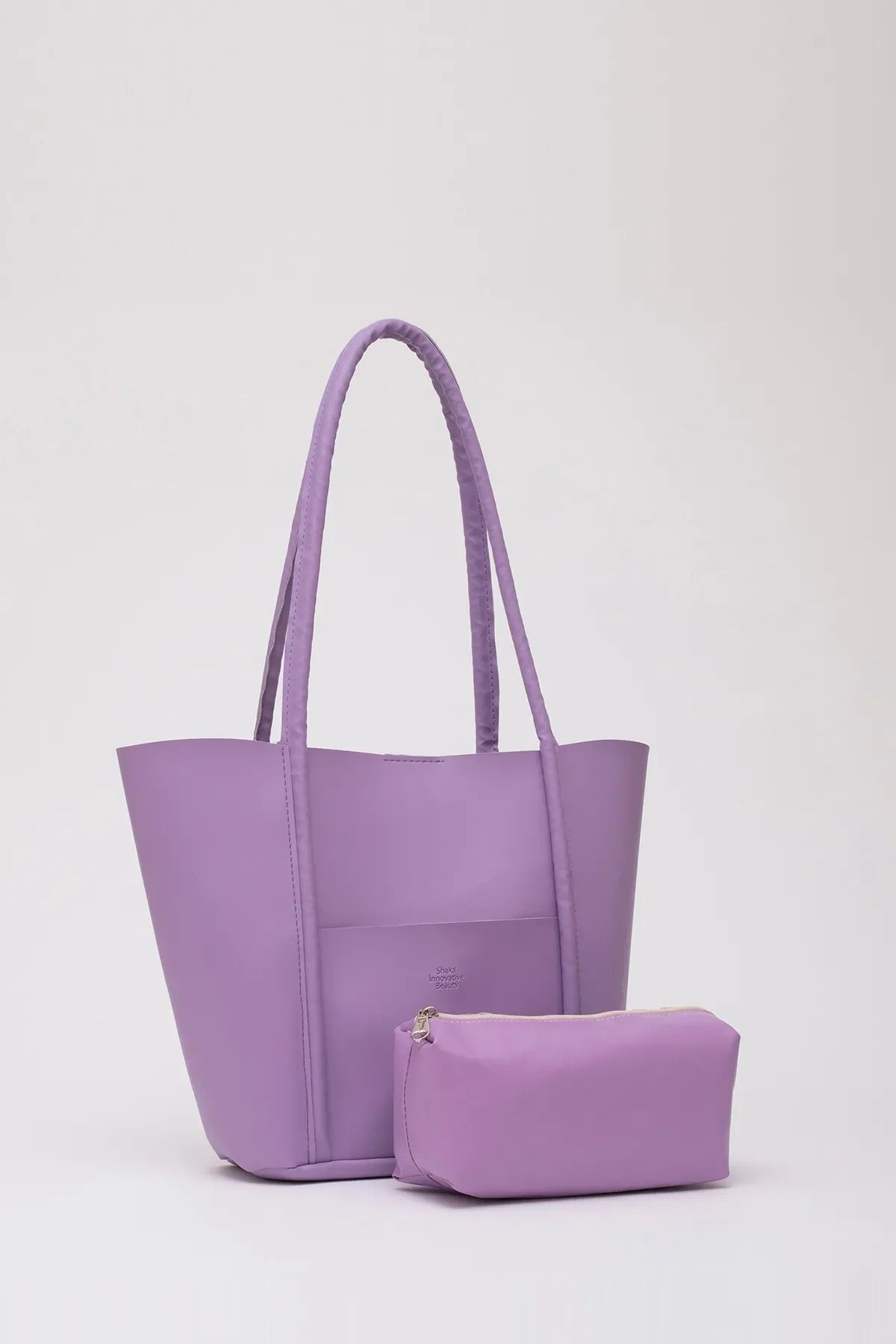 Large Faux Leather Tote & Shoulder Bag with Front Pocket, Snap Closure, and Matching Makeup Pouch