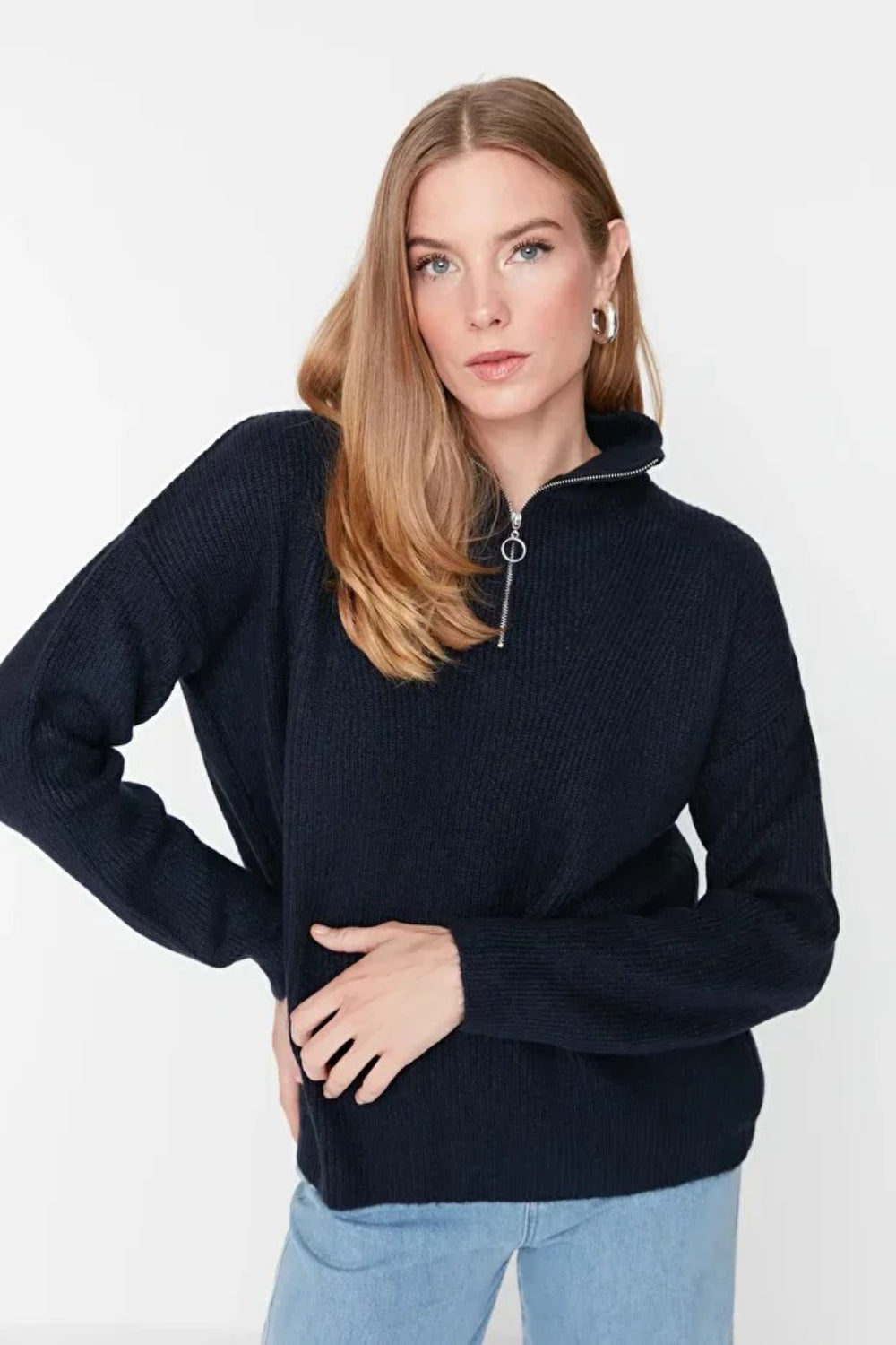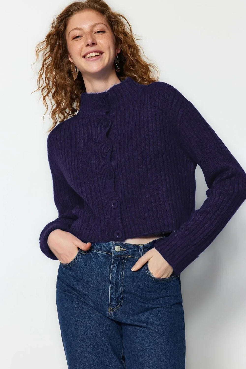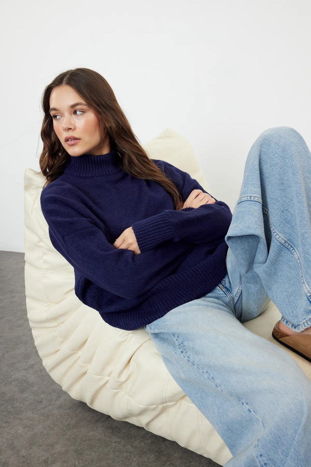 Oversized Long Sleeves Midi Knitted Cardigan with Pocket Details in Navy