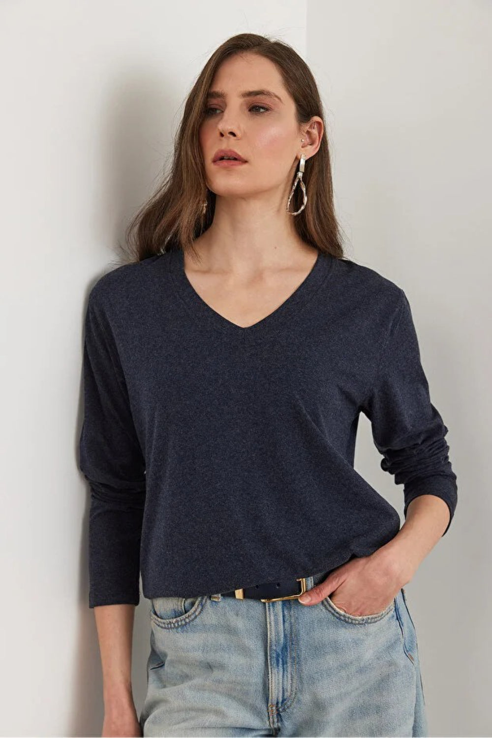 Viscose Soft Fabric Stretch Knit Blouse with Thumbhole Detail