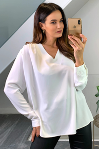 Introducing the perfect oversized blouse! Elevate your everyday style with this effortlessly chic V-neck design. Crafted from light and airy fabric, it offers the perfect blend of comfort and elegance, making you feel as beautiful as you look. The relaxed oversized fit drapes gracefully, while the deep V neckline adds a touch of sophistication. Whether you’re dressing it up for a lunch date or keeping it casual for a weekend outing, this versatile blouse is sure to become a wardrobe favorite. Made from high-quality materials, it’s designed to keep you looking stylish season after season in timeless white.