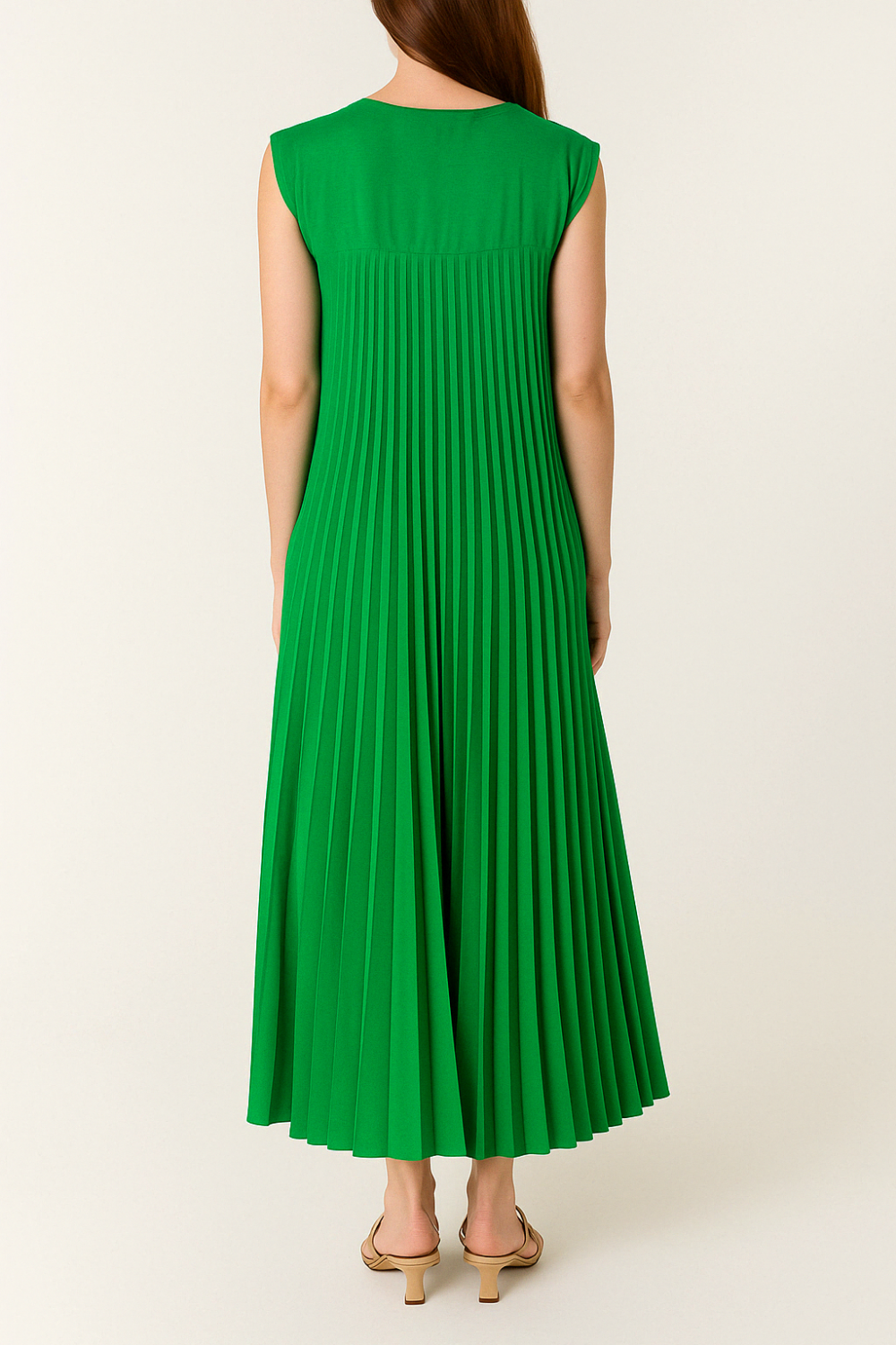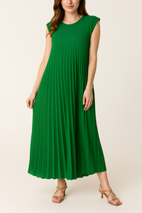 Oversized Cap Sleeve Pleated Maxi Dress in Green