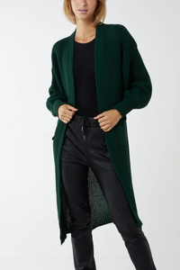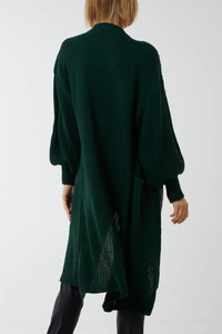 Oversized Long Sleeves Midi Knitted Cardigan with Pocket Details in Bottle Green