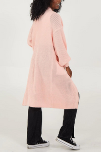 Oversized Long Sleeves Midi Knitted Cardigan with Pocket Details in Pink