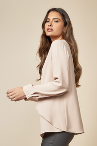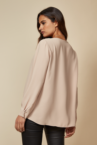 Long Sleeves Relaxed Fit Layered Top with Necklace in Beige