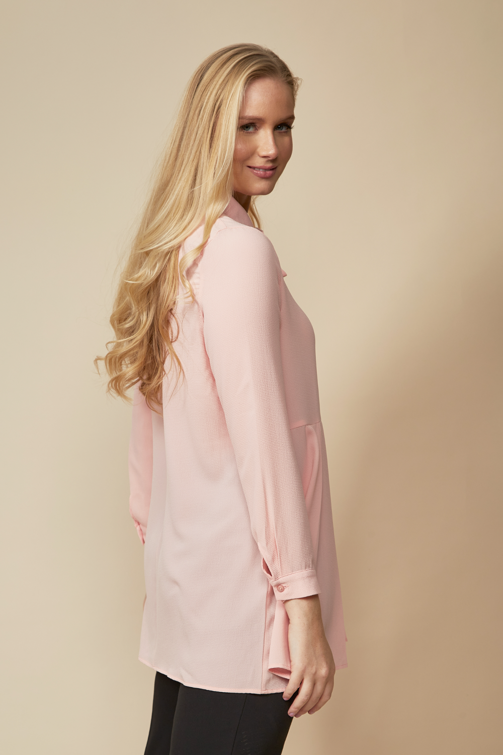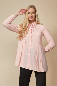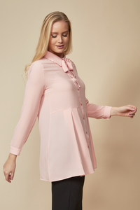 Oversized Long Sleeve Relaxed Pleated Fit Shirt with Tie Detail in Pink