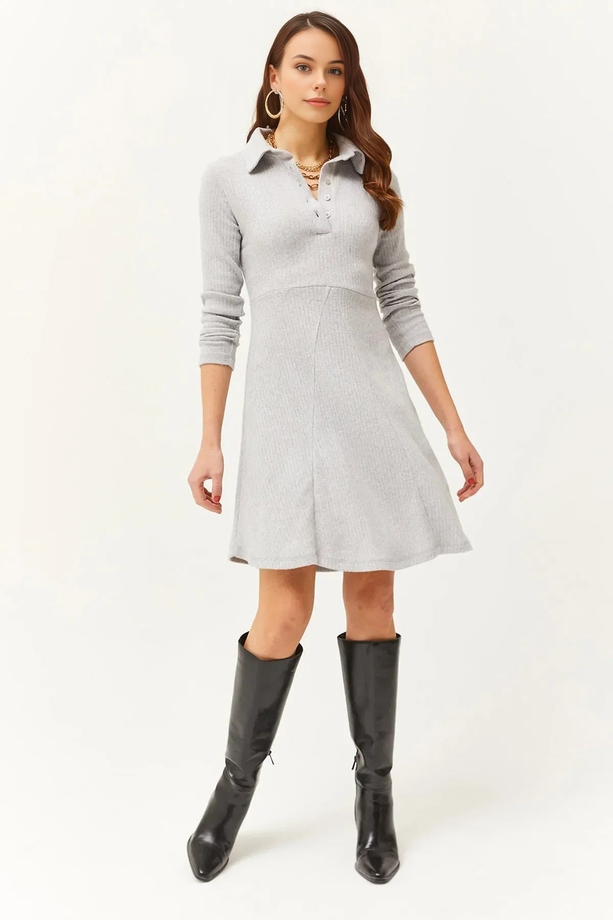 Mélange Ribbed Stretch Knit Blouse with Snap Buttons – Fitted