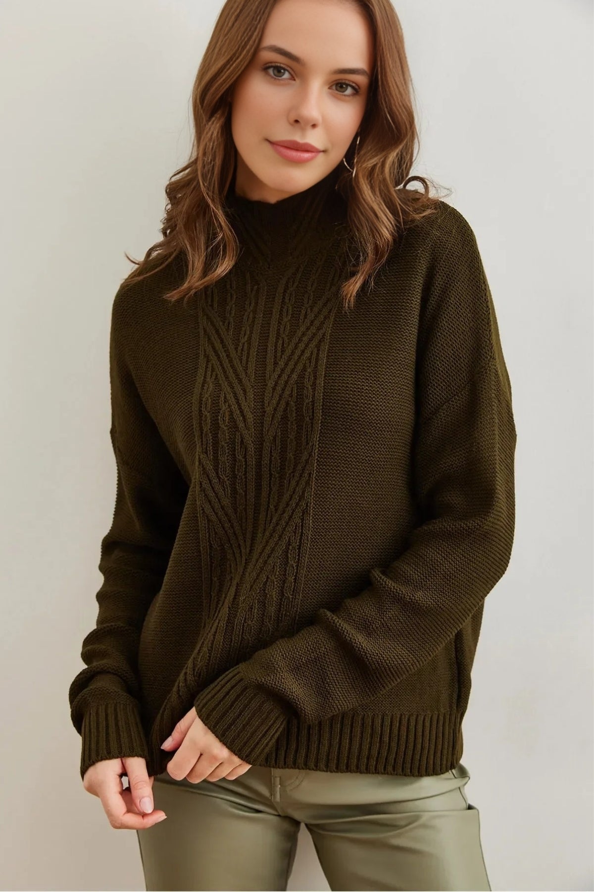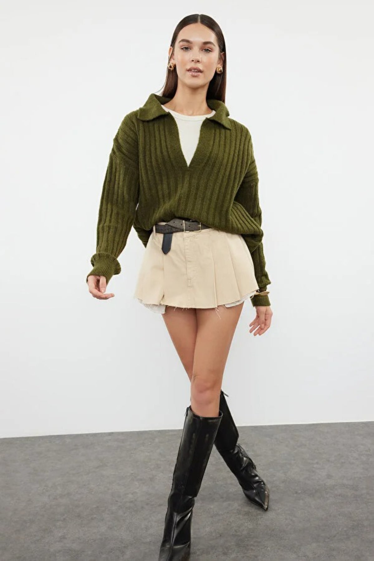 Soft-Textured Viscose Polo Neck Knit Sweater