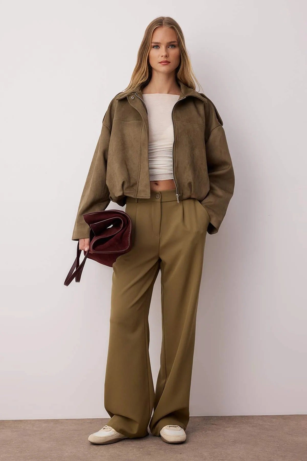 High Waist Wide Leg Pleated Woven Fabric Trousers
