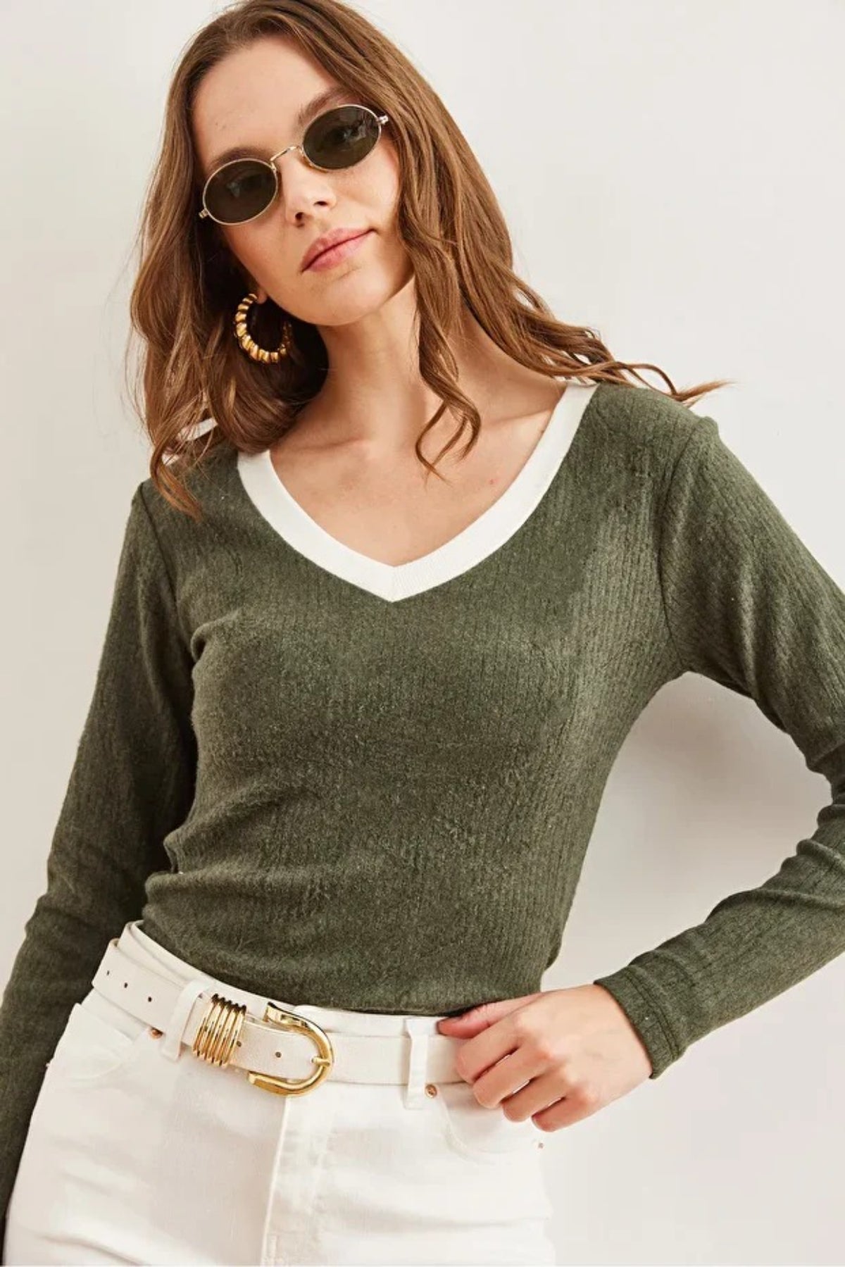 Viscose Soft Fabric Stretch Knit Blouse with Thumbhole Detail