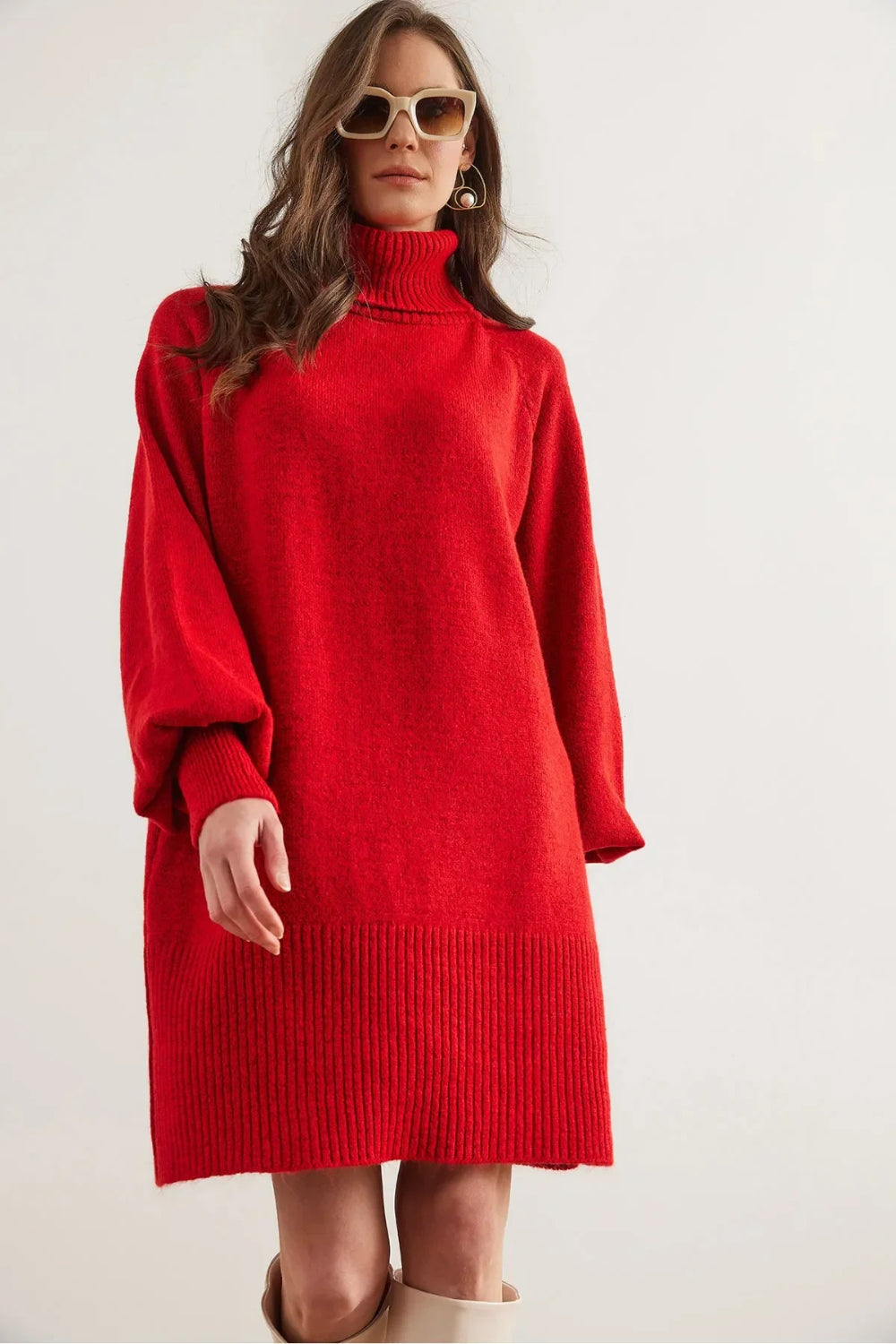 Turtleneck Balloon Sleeve Loose Knit Dress