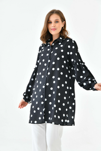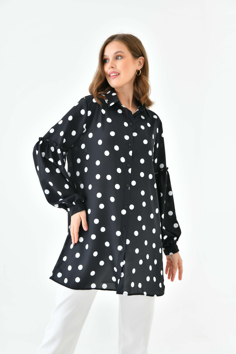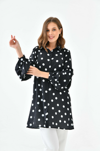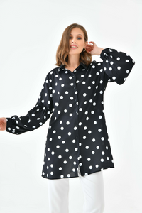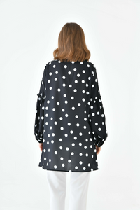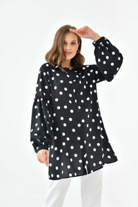 Oversized Balloon Sleeves Shirt Tunic with Polka Dot Print in Black and White