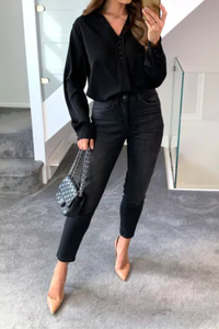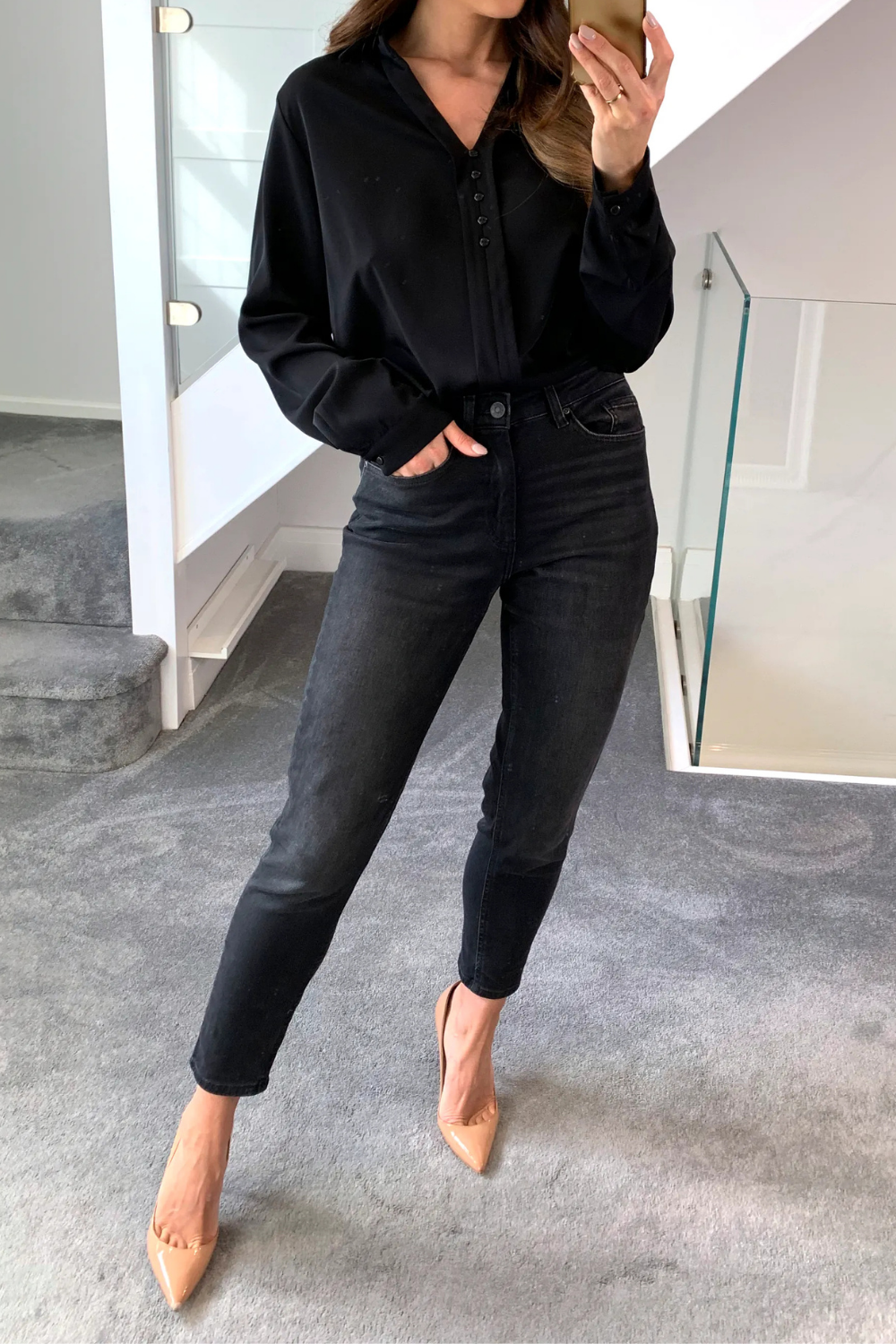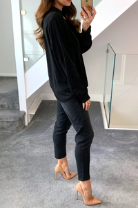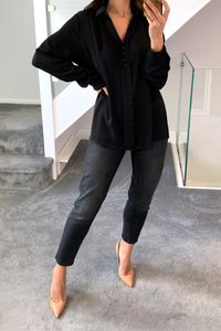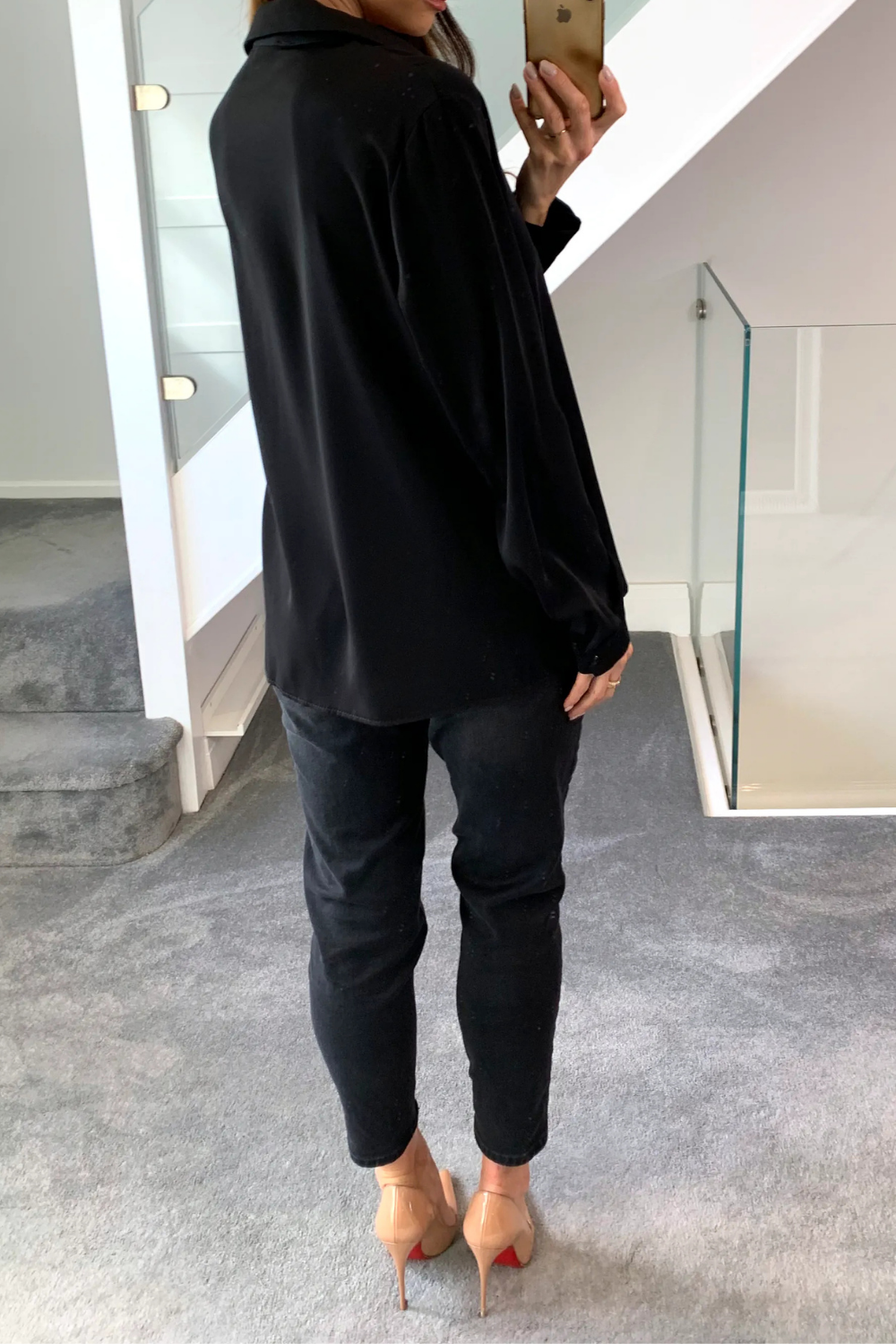 Oversized Long Sleeves Blouse Shirt with Button Details in Black