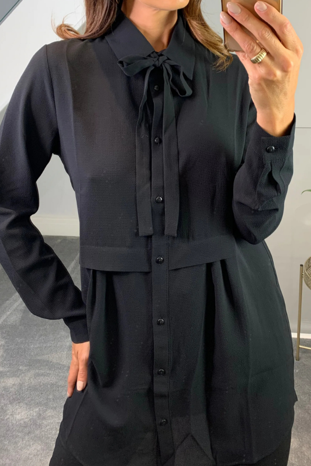 Timeless Appeal: The sleek black color and minimalistic design make this tunic shirt a wardrobe staple, easily paired with different accessories and bottoms for endless styling possibilities.