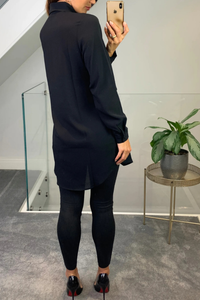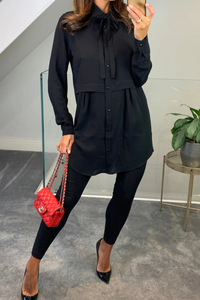 Elevate your wardrobe with our chic Oversized Tunic Shirt in timeless black. Designed for both comfort and style, this versatile piece features a relaxed fit that drapes beautifully over the body, making it perfect for any occasion. The unique tie detail adds a touch of elegance, allowing you to customize the fit to your liking. Crafted from soft, breathable fabric, this tunic shirt is ideal for layering or wearing alone. Pair it with your favorite jeans or leggings for a casual look, or dress it up with tailored trousers for a more polished ensemble. Experience the perfect blend of comfort and sophistication with this must-have addition to your collection.