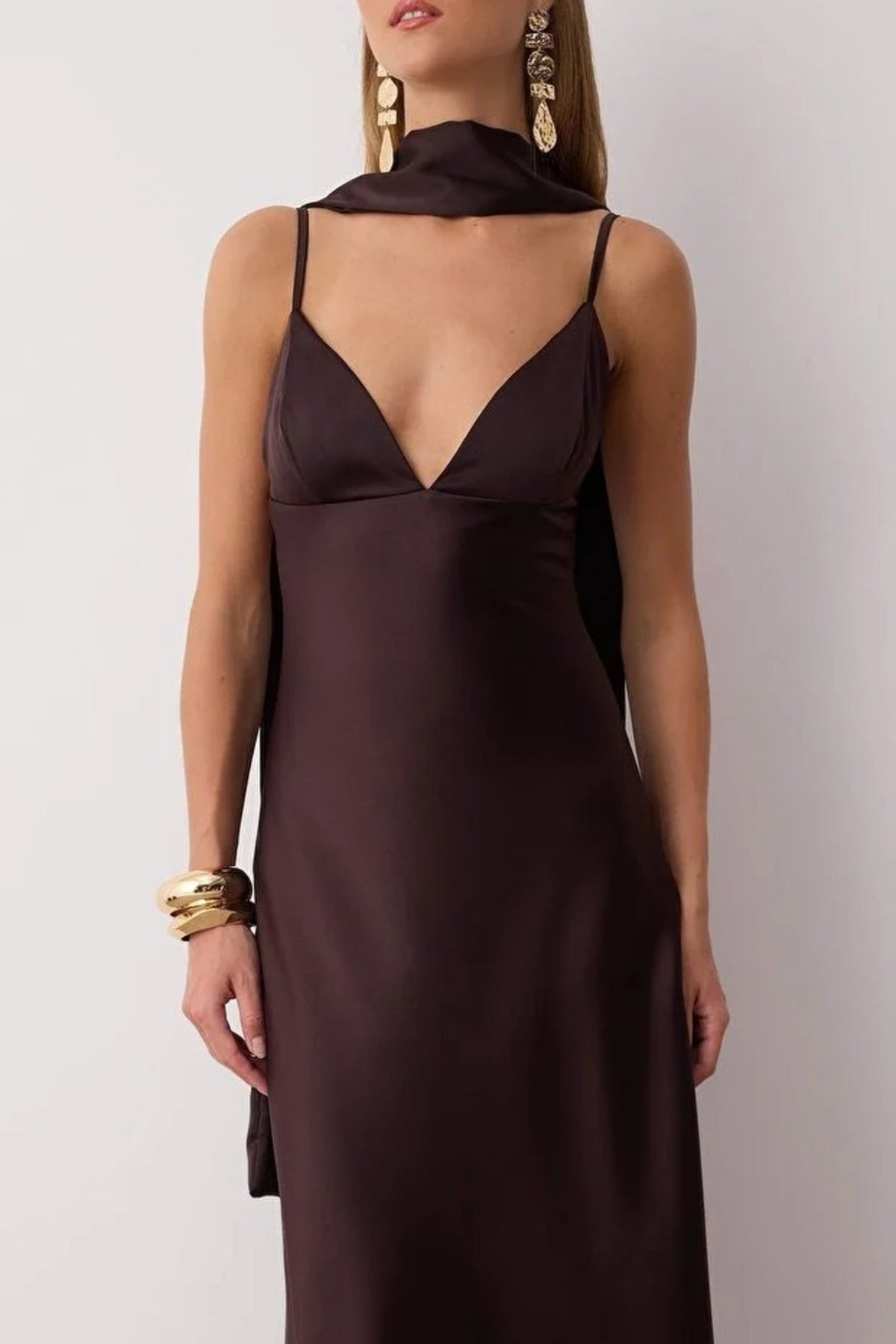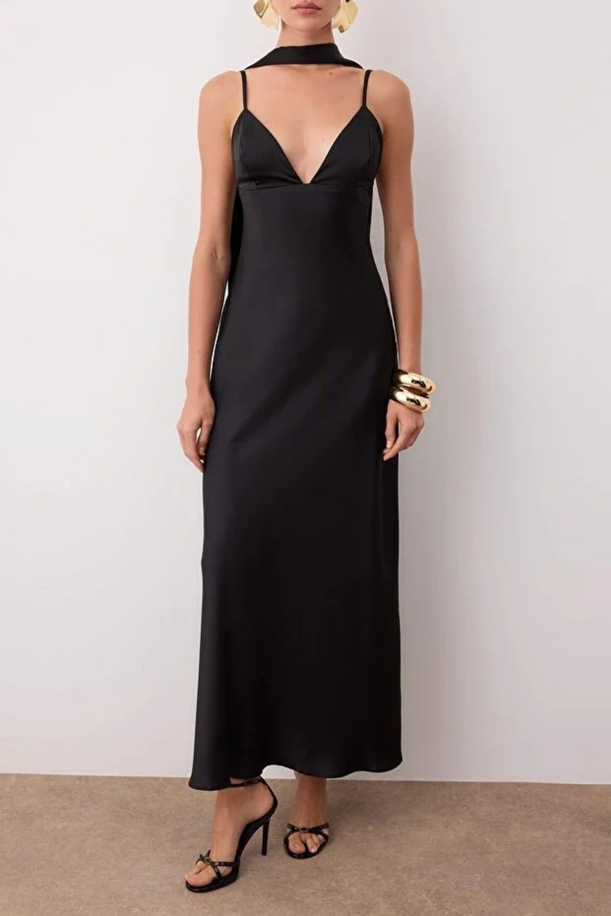 Maxi Satin Evening Dress with Shawl Detail
