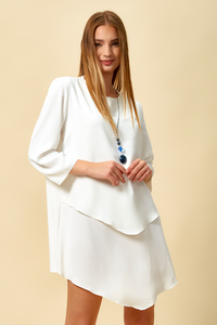This is a versatile and stylish addition to your wardrobe! This tunic features a granded 3/4 sleeve for a flattering silhouette, perfect for any occasion. Dress it up or keep it casual. The possibilities are endless! Made with high-quality materials, this tunic is both comfortable and fashionable. A must-have for any fashion-forward woman this season!