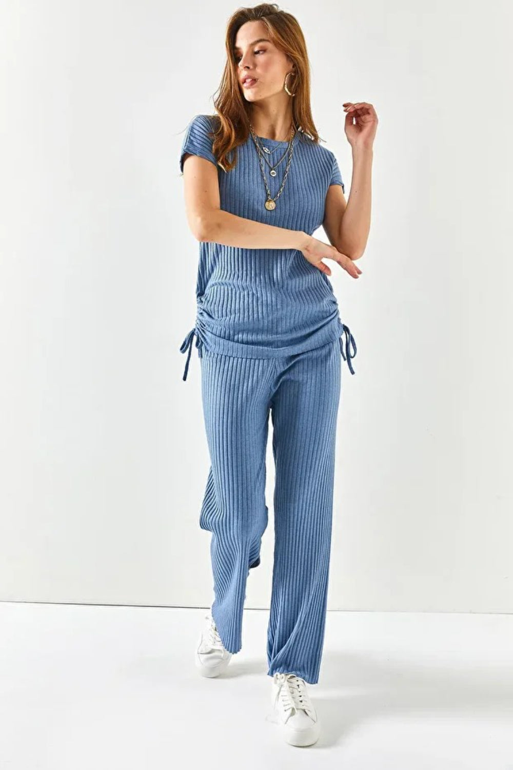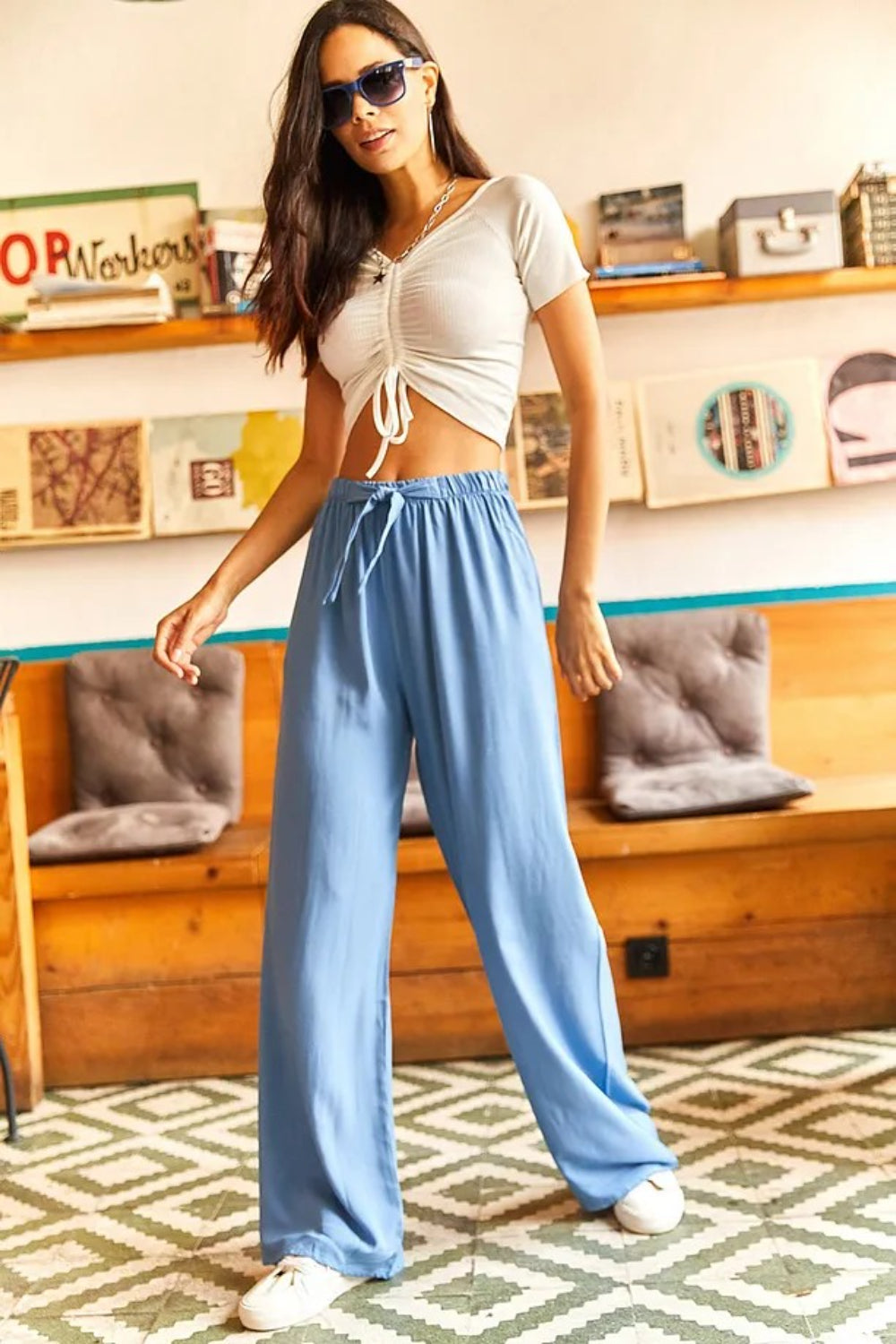 2-Piece Set – Side-Ruched Blouse and Palazzo Pants