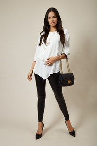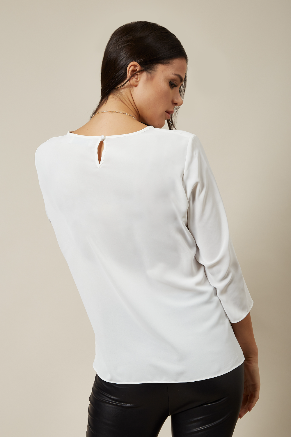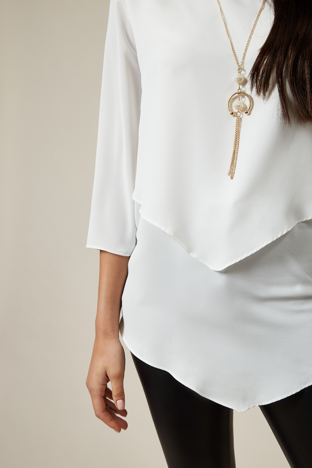3/4 Sleeve Relaxed Layered Top With Necklace In White