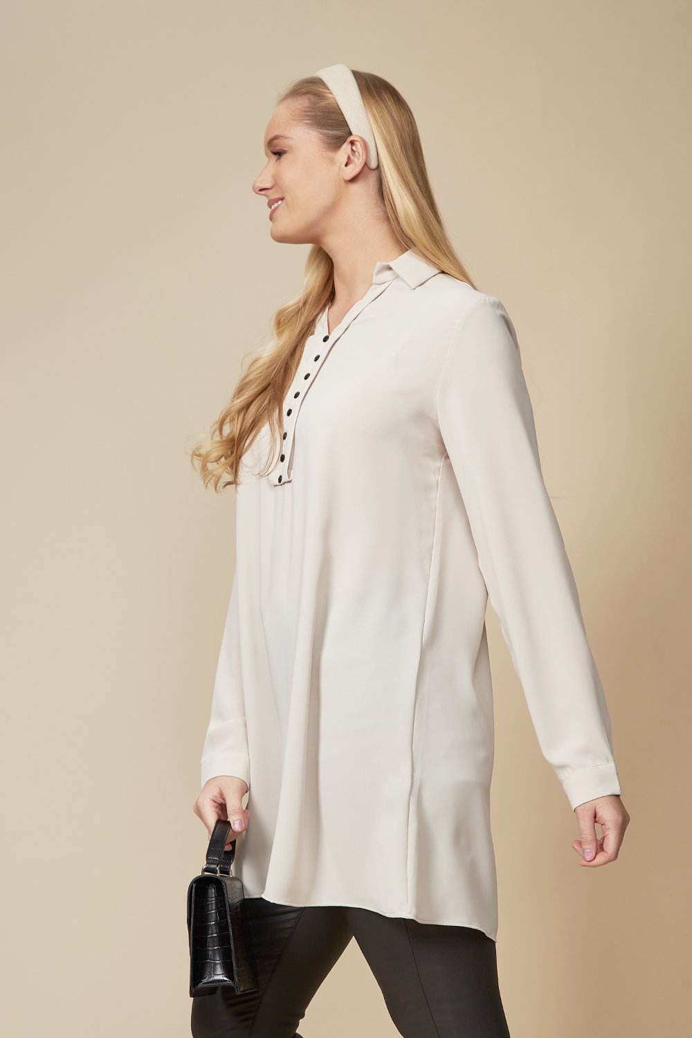 Get ready to embrace effortless chic with this stunning oversized top. This tunic feature a relaxed fit that drapes beautifully, giving you a trendy and comfortable look. It's like wearing a stylish cloud of elegance! The standout feature of this top is the delightful button down detailing on the front. Shirt collar add a touch of feminine charm and create a playful, romantic vibe that is sure to catch everyone's attention. It's a statement piece that exudes both confidence and grace! Crafted from premium, high-quality fabric, this top offers exceptional softness and durability, ensuring long-lasting wear without compromising on comfort. You can feel confident knowing that you're wearing a top that's as comfortable as it is stylish!