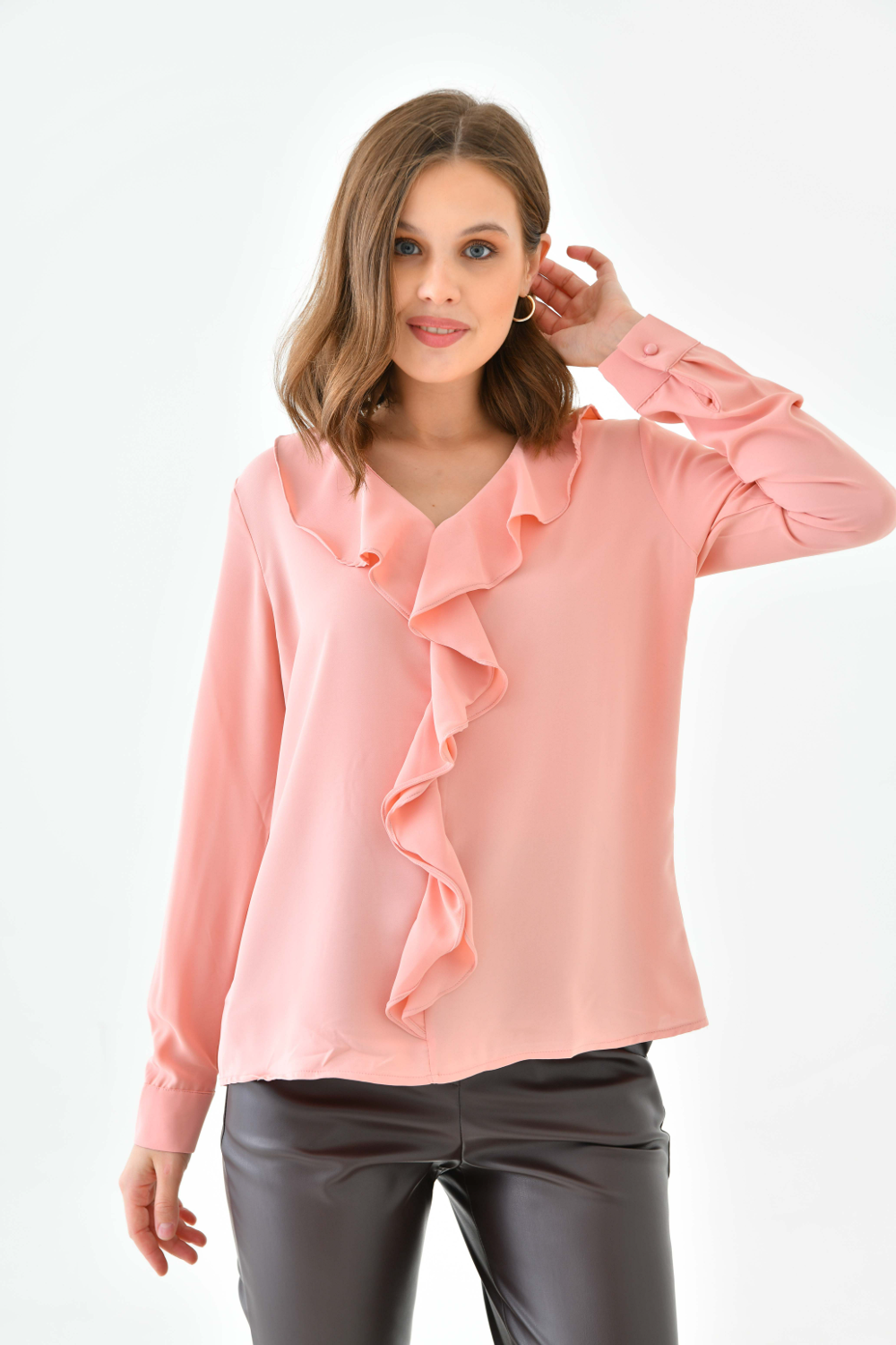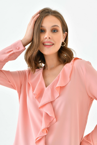 Made from high-quality fabric, it's both durable and comfortable, ensuring that you can wear it all day without any discomfort! So why wait? Add the Oversized Long Sleeve Frilled Front Blouse Top in Pink to your collection today and elevate your style game to the next level!