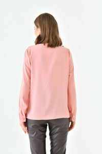 Oversized Long Sleeve Frilled Front Blouse Top in Pink