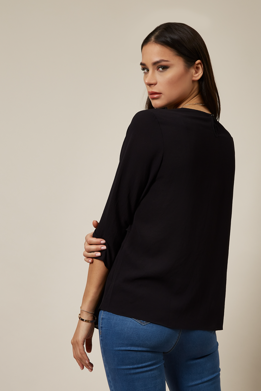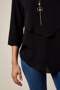 3/4 Sleeve Relaxed Layered Top With Necklace In Black