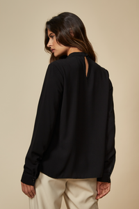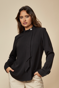 Oversized High Neck Top with Brooch Details in Black perfectly fits for workplace and also classy piece for night outs, you can easily combine with basic jeans and tights. You can complete your look with basic necklace!